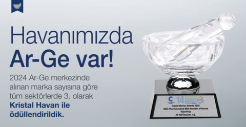Ar-Ge Merkezimizde akademik faaliyetlerimizi sürdürürken marka tescillerimizi de ödül ile taçlandırmanın ve geleceğe iz bırakmanın gururunu yaşıyoruz. Kimyagerler Derneği ve Atatürk Üniversitesi işbirliği ile Antalya’da düzenlenen 14.Uluslararası İlaç Kimyası Kongresi’nde Ali Raif İlaç olarak hem posterimizi sunduk hem de yerel Ar-Ge merkezlerinin ödüllendirdiği Crystal Mortar Awards’da 2024 yılı Ar-Ge Merkezlerinde Alınan Marka Sayısına göre […]